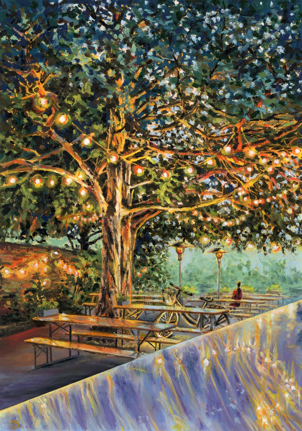 I like to imagine what people may feel and think about at that particular moment. Is this individual feeling melancholic, waiting for someone to come, or just enjoying their solitude and this pensive glow? The interpretation is yours to explore.