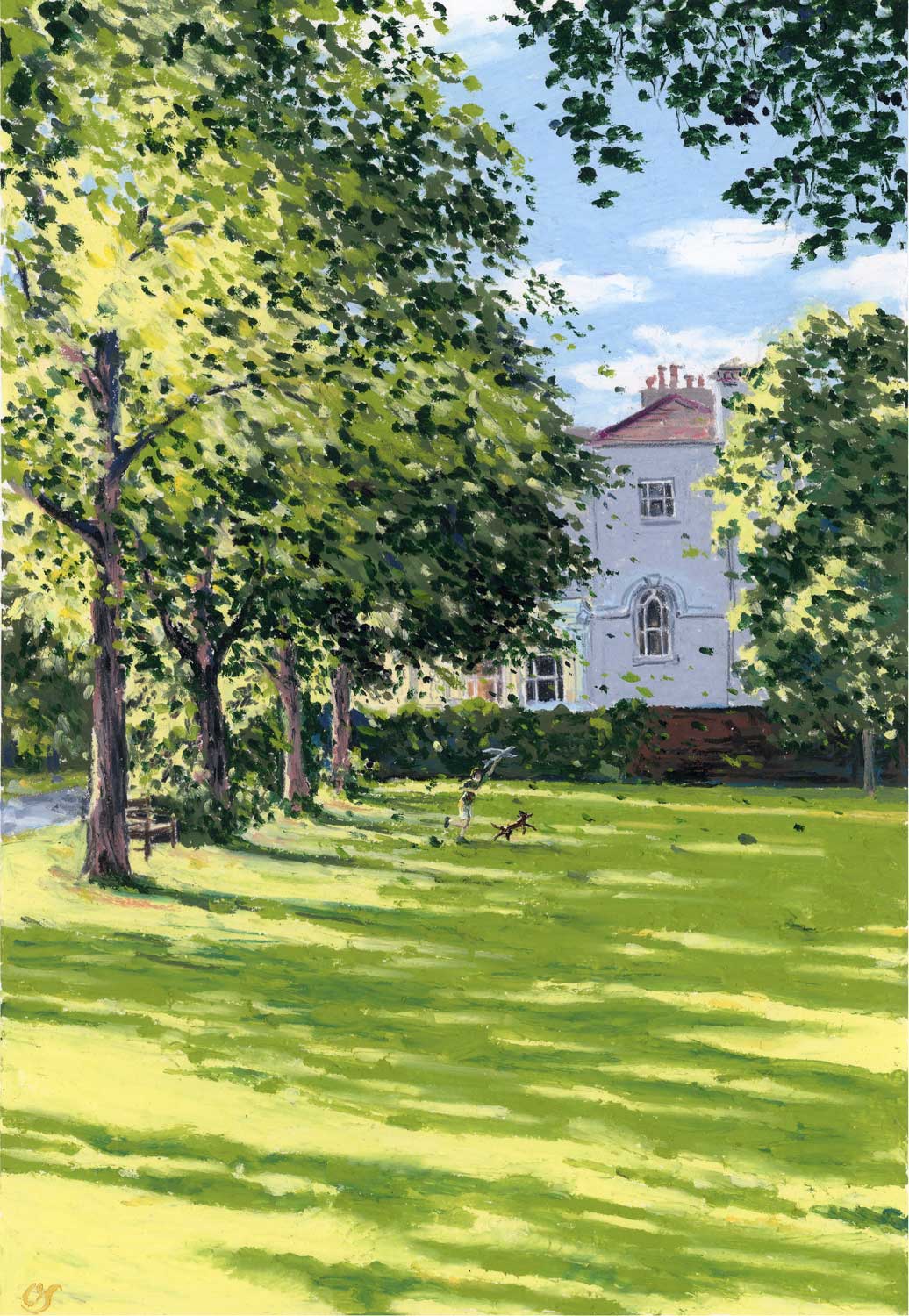 Trees dance in the wind, enjoying it just as the boy with his dog chases dreams.
